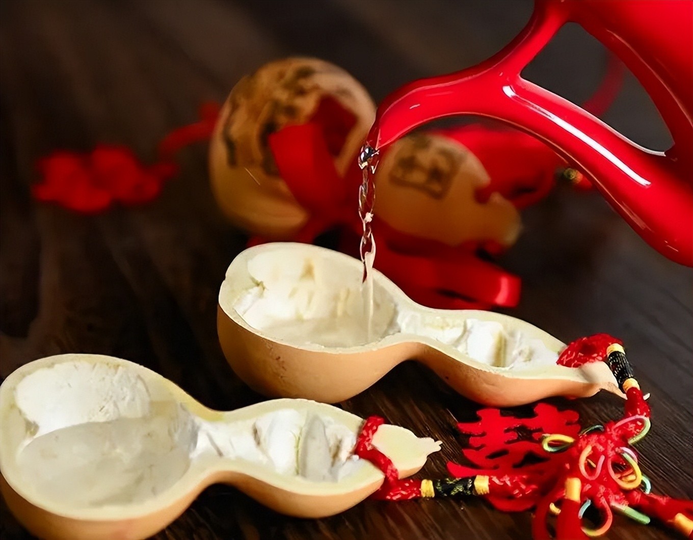 而最令人津津乐道的,莫过于新人饮"合卺酒"的风俗了。