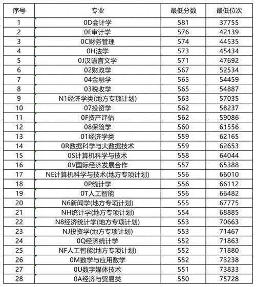 山东财经大学历年录取最低分数和最低位次以及对应专业: