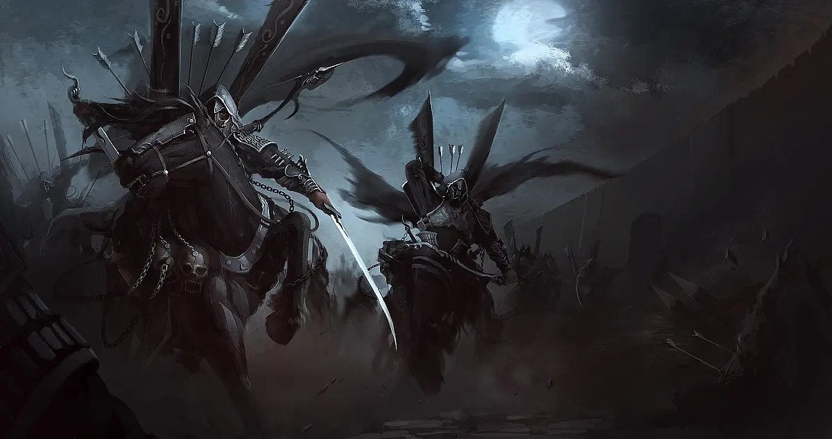 金庸先生在天龙八部之中也有描写,是乔峰麾下的一支近卫部队。“但听得蹄声如雷,十余乘马疾风般卷上山来。马上乘客一色都是玄色薄毡大氅,里面玄色布衣,但见人似虎,马如龙,人既矫捷,马亦雄骏,每一匹马都是高头长腿,通体黑毛,奔到近处,群雄眼前一亮,金光闪闪,却见每匹马的蹄铁竟然是黄金打就。来者一共是一十九骑,人数虽不甚多,气势之壮,却似有如千军万马一般。”