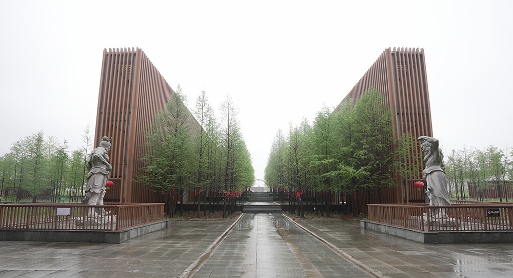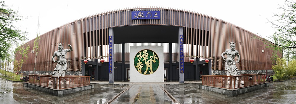 水月禅寺建筑规模约为7000平方米,总体建筑布局和现代风格创意与湿地公园的整体生态环境相辅相成、相得益彰,使得整个区域充满了生态之舒适、简约之唯美、禅意之启发、水月之清凉。