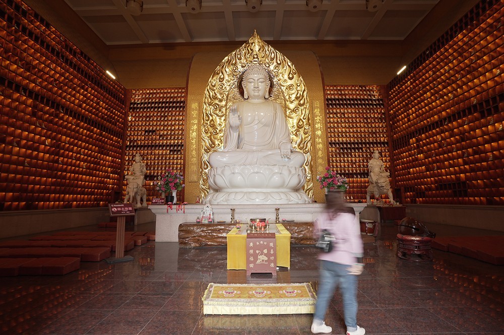 第一横轴分别为观音殿和地藏殿,第二横轴分别为念佛堂和禅堂。在四周还分布着僧僚、香积厨、客僚、展卖厅等建筑。大雄宝殿内,一个个栅格摆放着佛像,金碧辉煌,威严雄壮。