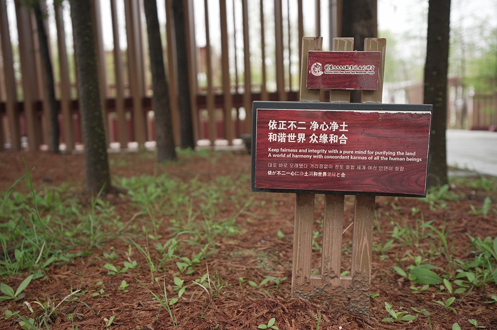 我们仅花费门票20元,便可以瞻仰到世界最美九大宗教建筑了。走过了桥进入院内。水月禅寺建筑群总平面沿正南正北方向中轴对称式布置,纵向一根轴,横向2根轴,纵轴上依次分布着山门、天王殿、大雄宝殿、藏经阁。