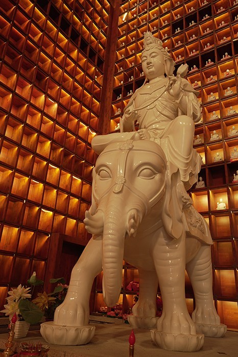 参观完毕,我们回到水月广场上。在水月观音示现法相的福地上,水月禅寺以现代化的设计理念重现了“寺庙浮于水上”的美景,月夜,禅寺内处处可得清风明月为伴,不知又有几人能得感通。
