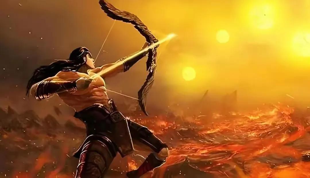 后羿射日:天上有十个太阳,尧帝派后羿射下了九个,保护了人类免受灾难。
