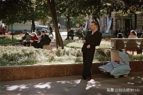 ▲这是1955年海参崴,居民在广场上悠闲散步的光景。此时,距离1860年晚清割让海参崴已经过去了95年的时间。