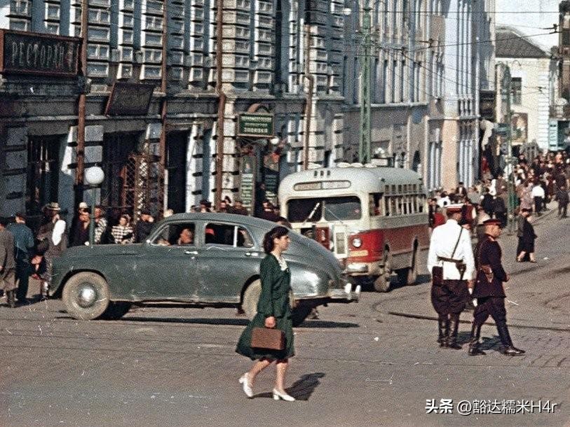 ▲这是1955年海参崴的街头,繁忙的俄罗斯人来来往往,两边高耸的是俄罗斯的建筑。
