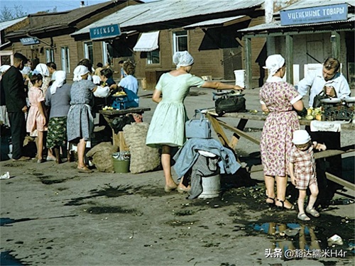 ▲这是1955年的海参崴集市,市场上物种丰富,一群俄罗斯家庭主妇正在挑选着,可口的瓜果和海产。