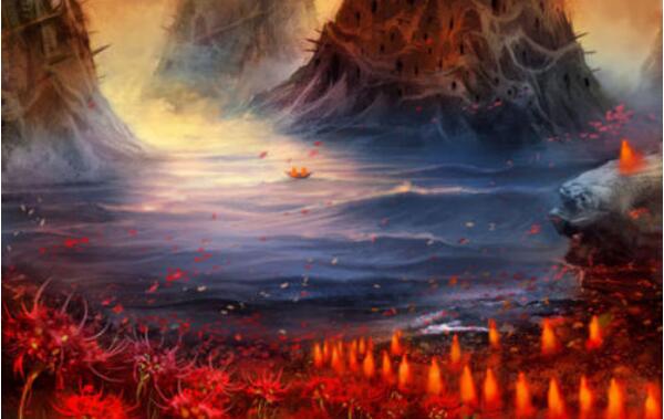人死后先过鬼门关,再经过黄泉路,路上盛开着只见花不见叶的彼岸花;黄泉路尽头就是忘川河,河上有一座桥叫奈何桥,过桥后有一座望乡台。忘川河边有一块石头叫三生石,上面记载着前世今生来世,走过奈何桥,在望乡台上看最后一眼人间,喝杯孟婆汤了却今生。