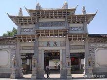木府门前的石牌坊,采用虎跳峡金沙江边的汉白玉建成,宽9米,高约18米,4根石柱撑着牌坊上的碑、椽、檐和坊盖,匾额上镌刻著明神宗钦赐的"忠义"二字。