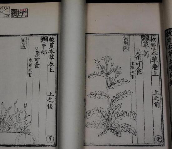 救荒本草是明朝朱写的一本书。那时候它引进了很多植物。这是一个植物的插图,并介绍了当时植物是如何分类的。总共有两卷。总共记录了414种不同的植物,而且都配有生动的图片,方便人们识别各种植物。可以说,这本书的编纂非常艰难。