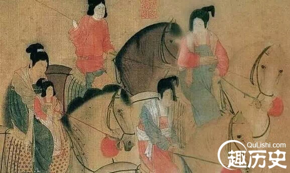 《虢国夫人游春图》里,闺蜜们骑着马抱着娃,还穿着这种容易走光的衣服,也是蛮拼的。