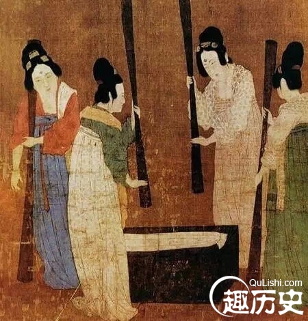 如果说游春、饮宴时姑娘们想美美哒,多露点儿情有可原,可在《捣练图》里,姑娘们干活时也在露胸……反正当时大明宫的fashion已经震惊了全国。