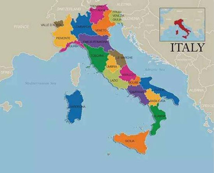 7、地理:国土面积301333平方公里,位于欧洲南部,包括亚平宁半岛以及西西里岛、撒丁岛等岛屿。北以阿尔卑斯山为屏障与法国、瑞士、奥地利和斯洛文尼亚接壤,80%国界线为海界。意、法边境的勃朗峰(Monte Bianco,Mont Blanc)海拔4810米,居欧洲第二;
