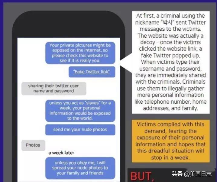他们威胁女生说,如果你在一周内不把自己扮成“奴隶”,那么你的信息将会公之于众,与此同时还要求女生向自己发送裸照。