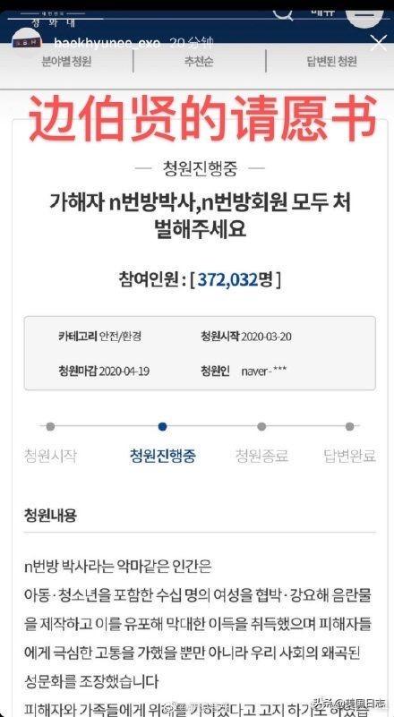 在众多请愿的压力之下,3月23日韩国总统文在寅下令对“N号房”全面调查,不仅调查运营者,也要对“N号房”的所有观看会员进行调查,这事情就大了,要知道至少有26万会员呀!