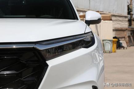 新一代CR-V e:HEV外观延续了燃油版的设计,不过前后Logo融入了蓝色元素,以显示其电气化车型的身份。而在细节方面,新一代CR-V e:HEV于前脸处采用了融入两侧灯组内部的镀铬饰条,这一设计与燃油版车型保持一致;而前包围底部中央的进气口轮廓则与CR-V e:PHEV(插电混动版)造型相同。