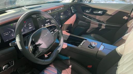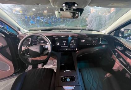 来到内饰,相较于外观的变化,内饰的变化才是这次升级的重点,新款揽月使用了环抱式的座舱样式,整体的豪华感和质感都有了很大的提升,此前在瑶光上使用的双辐方向盘也出现在了新车上,也进一步提升了档次感,屏幕方面从此前的双联屏升级成为了时下流行的三联屏设计,12.3英寸的液晶仪表在显示清晰度以及内容的丰富程度上都有着不错的表现,15.6英寸的中央触控屏配备高通骁龙8155芯片+Lion5.0雄狮生态系统开机速度使用流畅度都有了提升,12.3英寸的副驾娱乐屏功能也是很丰富的。