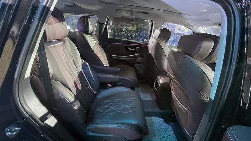 内饰材质方面新款揽月有了很大的提升,像中控台、门板这些经常与身体接触的地方,都使用了皮质材料进行覆盖,座椅也变得更加宽厚,新款揽月在座椅布局上提供6/7座可供选择,满足不同的用户需求,同时座椅的配置也很丰富,像主驾座椅支持加热、通风、按摩、记忆等功能,副驾使用了全新的女王座椅,第二排座椅也配有加热和通风功能,可以说这次座椅的升级在乘坐感受方面有了不错的提升。