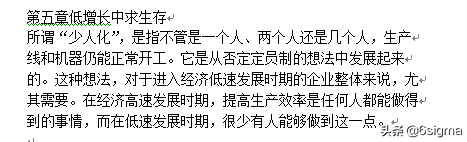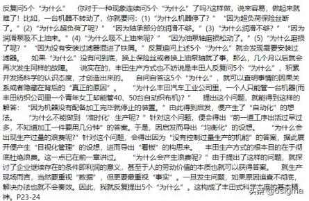 精益的教材一般都不难理解,但就是多、杂一点,能看明白,不见得能随心所欲地使用;如果单独每个工具照猫画虎的使用,这也是经常被使用的方法,本身并没有错,先模仿再创新。《丰田生产方式》里面的内容就有点读小说、师傅带徒弟的沟通,说多了没用,截取一段原文,大家可以试试,感觉一下。