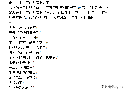 为了便于理解,我又把看到的一段文章,偷偷地截屏贴上来,希望有助于开阔大家思路,理解丰田生产方式。