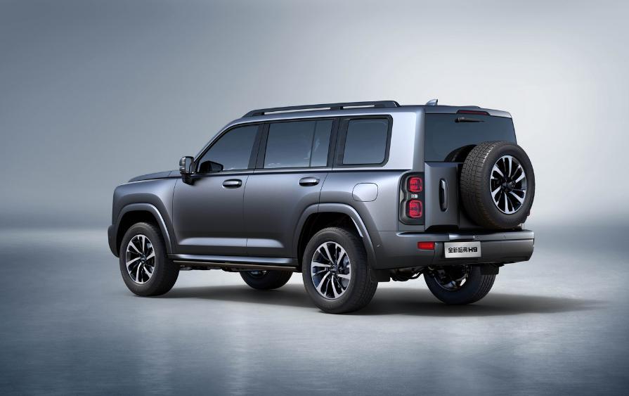 外观部分,全新哈弗 H9 的造型设计经典且方正,硬朗且复古。前脸拥有方形的进气格栅以及复古的圆形大灯,进气格栅采用平行线条设计,并以铆钉装饰,赋予其独特的视觉效果。车头下部配备了护板,能够保护车头在复杂越野路况下免受磕碰。