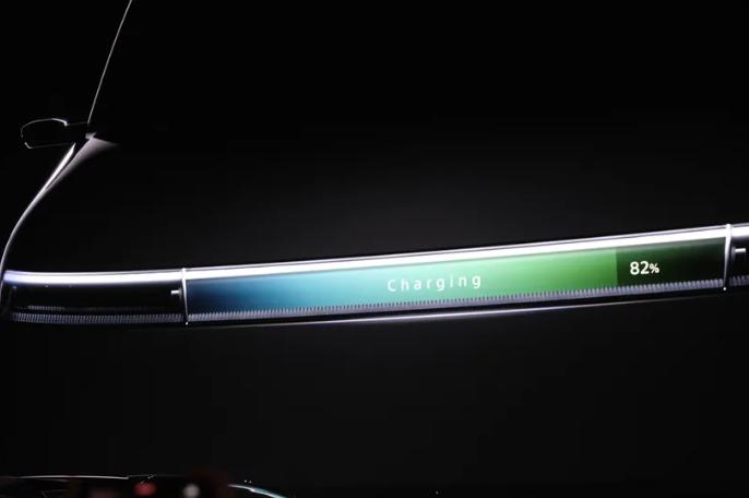 该车的正前方搭载了独特的 Media Bar,除了用来显示车标,还可以展示不同内容,包括充电进度等。该车还将支持城市驾驶场景的 L2 级驾驶辅助。