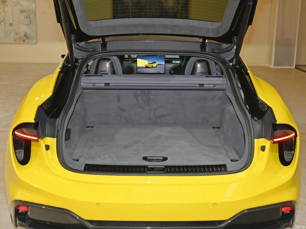 其他方面,该车内饰也使用了大量碳纤维实现轻量化,四座版本的内饰总共使用了 1.06 平方米的碳纤维,五座版本的内饰拥有 0.69 平方米的碳纤维;它会搭载 50W 无线充电;该车配备 64 色氛围灯;它配备感应式电动门,可选装电吸门;10 分区智能天幕等。