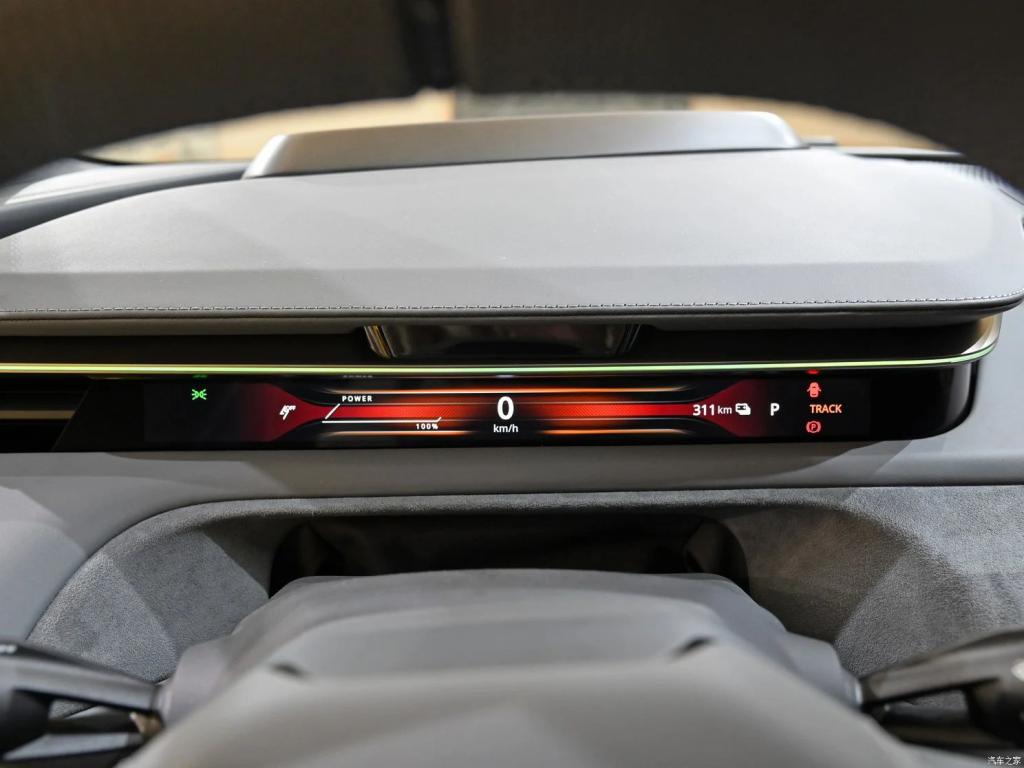 内饰方面,路特斯 EMEYA 兼顾了科技感和运动属性。15.1 英寸 OLED 中控屏采用 Unreal 虚幻引擎渲染,55 英寸的 AR HUD 可以显示道路信息、导航信息、辅助驾驶信息,流媒体外后视镜分辨率为 1280*720 且支持电动折叠,其实隐藏在面板中的还有 12.6 英寸主副驾窄屏。确实,现在的电动车已经离不开屏幕。