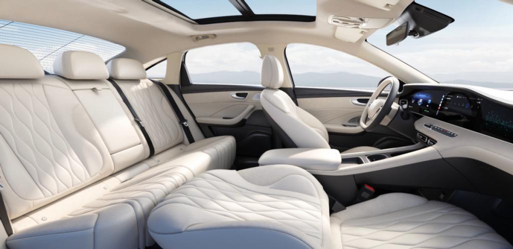 同时,智界 S7 已经达到行政级轿车的水平,它的车身长度接近 5000mm,轴距近 3000mm,车宽近 2000mm,而且车内乘员舱纵向的有效空间达到了 1910mm,能够与 "5、6、E" 行政级轿车平分秋色。