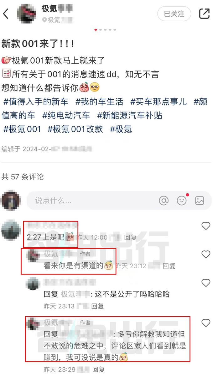 近日极氪某工作人员在网络上发布了新款极氪 001 的一则新消息,评论区中某网友表示新车将于 2 月 27 日上市。从该工作人员的回复语气来看,该时间节点可信度很高,说明 2 月 27 日上市的可能性较大。新极氪 001 车长增加 7mm,单 / 双电机入门版车型均配备了成本更低的磷酸铁锂电池包,预计售价也将降低。