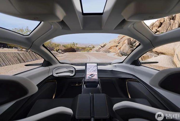 内饰方面,设计依然非常科幻且具未来感,座椅布局为两排四座设计,座椅设计纤薄,可以最大化车内空间,后排座椅还支持收起功能。此外,新车中控台处集成了一块尺寸比较夸张的中控屏幕,方向盘造型同样非常科幻。