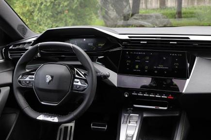 内饰的设计依然是那么有科技感,整体风格很科幻,采用环抱式设计,都说标致的内饰像飞机战斗机的驾驶舱,确实是那么回事儿。标致独特的平视显示仪表,位置更靠上,用户不必低头就能看到仪表。方向盘的尺寸小而紧凑,采用不规则造型,上方和下方都是更平直的设计。