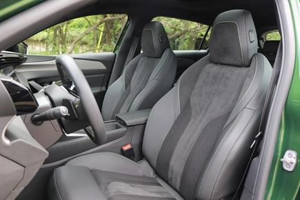座椅的设计也更加运动,座椅两侧的包裹性极强,采用真皮和翻毛皮拼接的材质。座椅上的纹理设计比较复杂。