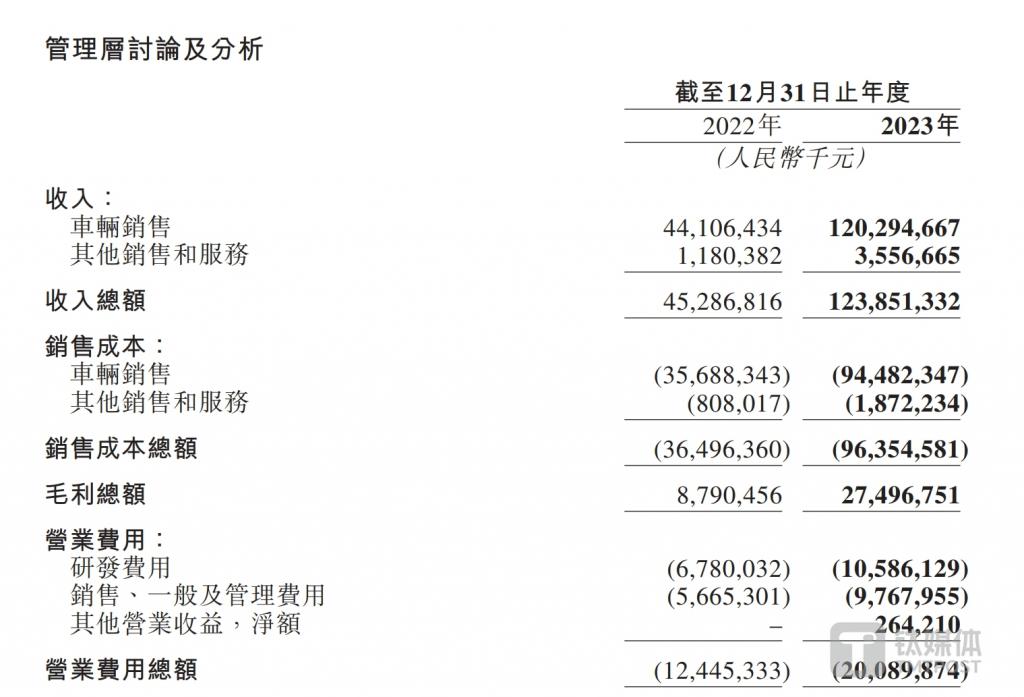 除车辆销售额的大幅提升,报告期内,理想汽车 -W 的其他销售和服务收入也较 2022 年的 11.8 亿元增加至 35.6 亿元,增幅达到 201.3%。据悉,其他销售和服务收入增加,主要是由于车辆的交付量增加,使得充电桩的销售额随之增加,以及车辆累计销量的增加使配件及提供服务的销售额随之增加。