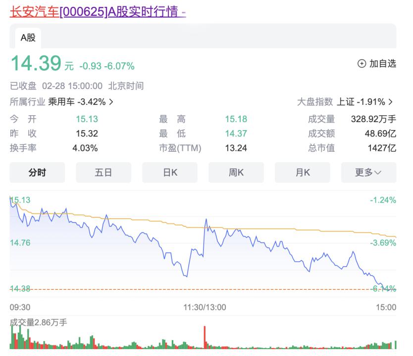 截至 2 月 28 日收盘,下跌 6.07%,报 14.39 元 / 股。由此可以看出,市场对于这件事的态度并不乐观。