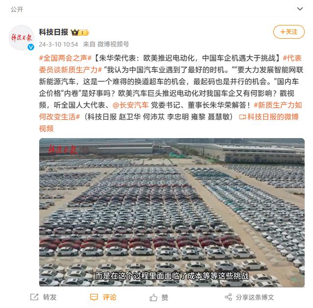 长安汽车董事长朱华荣谈欧美推迟电动化:中国车企机遇大于挑战