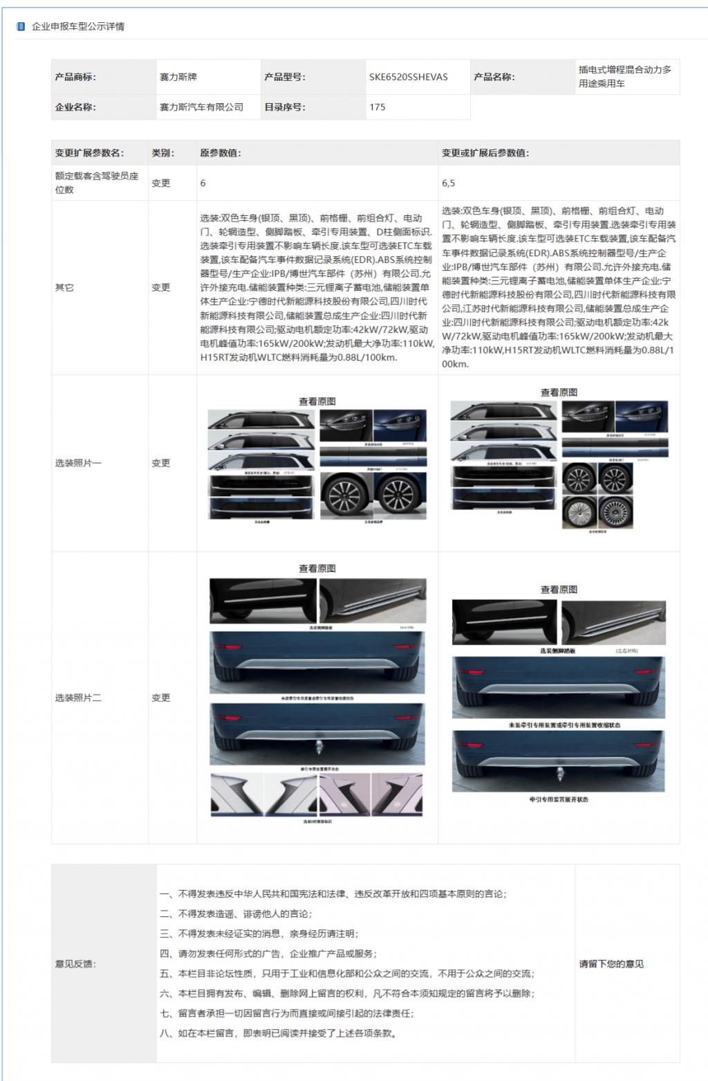 IT 之家 3 月 13 日消息,问界 M9 申报信息变更,由原先的六座改为五座 / 六座,同时还对选装保育费进行了调整。