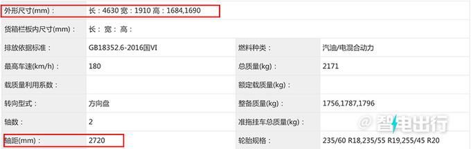 智电出行获得了捷途山海 L6 的实拍图和部分信息,新车采用封闭式格栅和熏黑进气口,两侧配有导流槽。山海 L6 长宽高为 4630 × 1910 × 1684/1690mm,轴距 2720mm,车身在大圣 i-DM 的基础上增加了 40mm,轴距一致。新车工况综合油耗为 1.25L/100km,上市后将与比亚迪宋 PLUS DM-i 展开竞争。