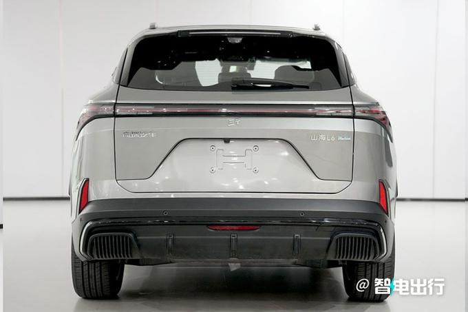 山海 L6 可选轮辋造型、卡钳、前雷达、外后视镜摄像头、尾部标识、行李架、后雨刮、黑色玻璃、车门把手造型、后排座椅头枕;搭载 1.5T+3DHT 插电混动系统,匹配三元锂电池组,发动机最大功率 115kW。