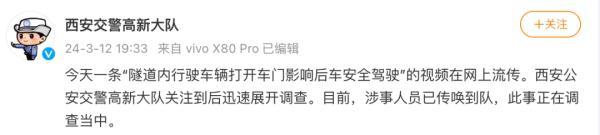 3 月 12 日晚,@西安交警高新大队 发布通报称,关注到该视频后已迅速展开调查,目前,涉事人员已传唤到队,此事正在调查当中。
