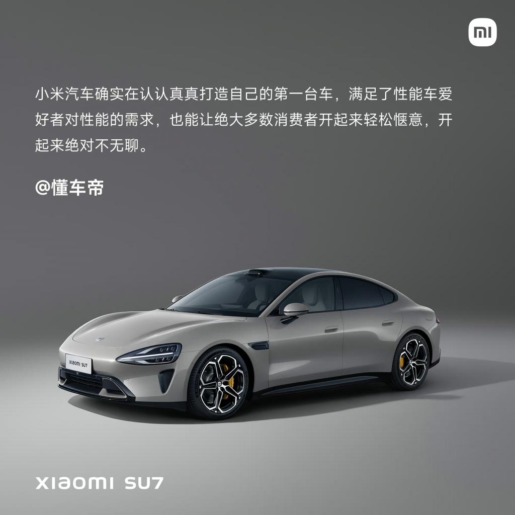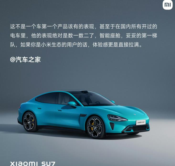 汽车之家评价小米 SU7:这不是一个车第一个产品该有的表现,甚至于在国内所有开过的电车里,他的表现绝对是数一数二了,智能座舱,妥妥的第一梯队,如果你是小米生态的用户的话,体验感更是直接拉满。