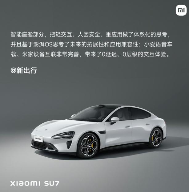 新出行:智能座舱部分,把轻交互、人因安全、重应用做了体系化的思考,并且基于澎湃 OS 思考了未来的拓展性和应用兼容性 ; 小爱语音车载、米家设备互联非常完善,带来了 0 延迟、0 层级的交互体验。