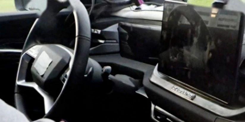 内饰部分目前只有一张非常模糊的偷拍照流出,根据图片的信息显示,新一代 Q3 车内共 2 块屏幕,其中车机屏采用了现在新车常见的悬浮屏设计,同时也可以看到车内的物理按键数量大幅减少。而从仪表屏上方的一些细节中可以看到,新一代 Q3 的中控台设计比较复杂,不排除奥迪会在这个比较复杂的中控台上布置一些诸如人脸识别传感器、HUD 模块等设备。