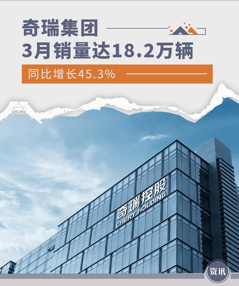奇瑞集团3月销量达18.2万辆 同比增长45.3%