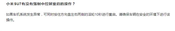 消费者普遍关心的是,小米 SU7 是否提供了一种强制重启中控屏的操作方法。