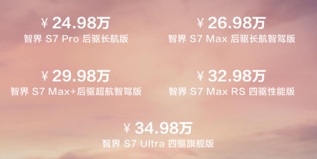 从最新的版本划分来看,新款智界 S7 的整体售价区间虽然没变,但 Max、Max+、Max RS 版本的价格均下调了 2 万元,性价比进一步提升,此外还推出了一个更进阶的 Ultra 版本。