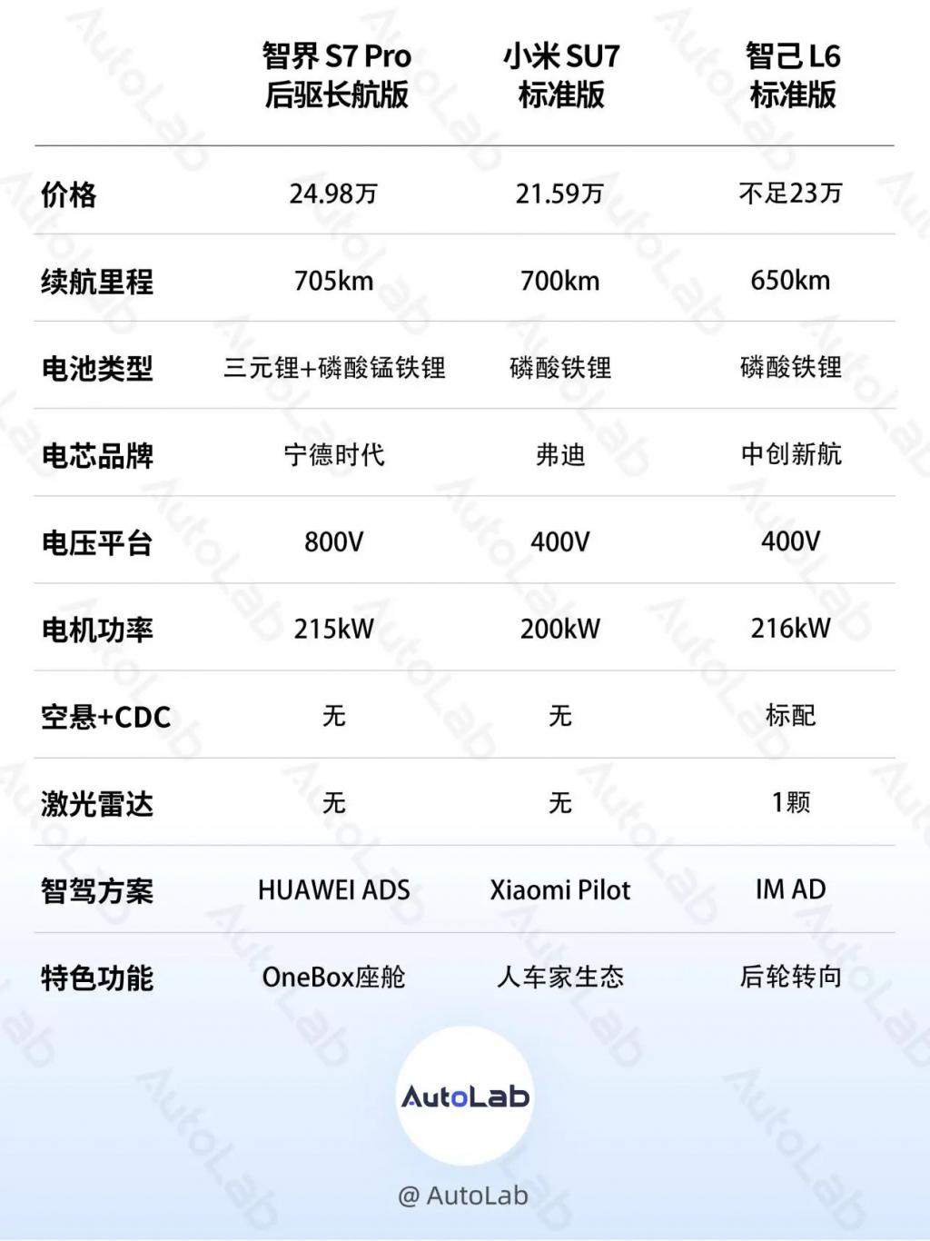 那么面对近期的小米 SU7 和 智己 L6 等新车,智界 S7 还有优势吗?