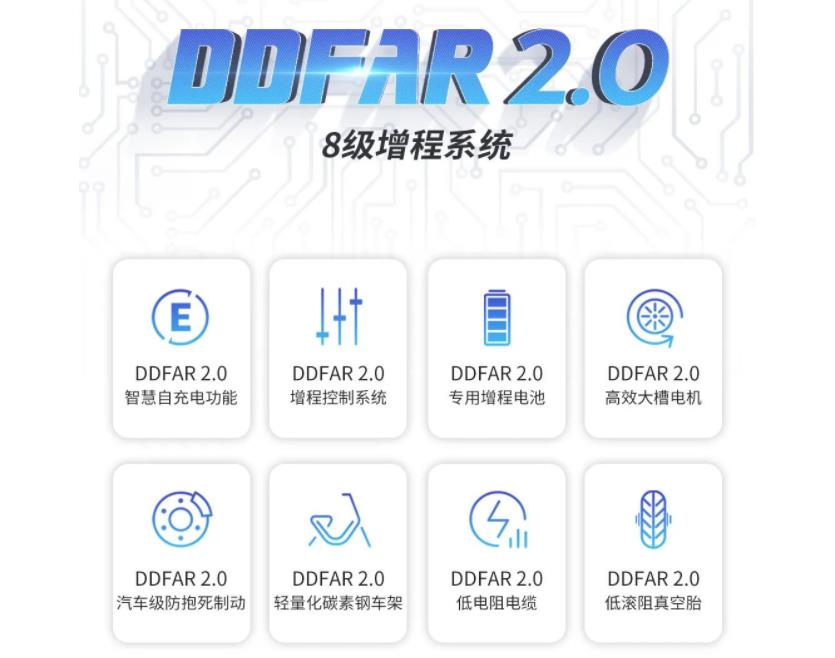 新蕾V速这款车一大亮点,是搭载了新蕾核心科技DDFAR2.0的8级增程系统,看名字似曾相识,该增程系统和雅迪TTFAR其实如出一辙。