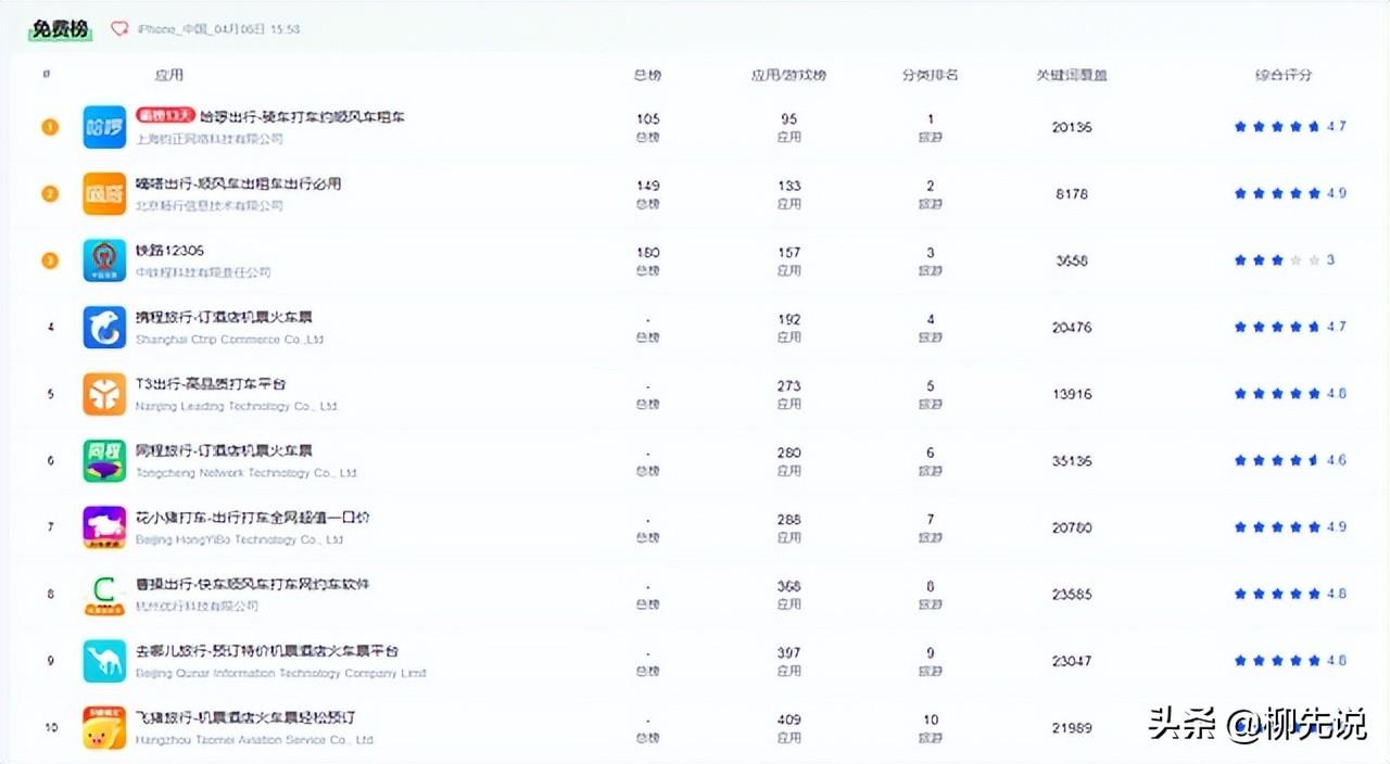 近些年,滴滴在共享出行领域长期处于一家独大,这让其它网约车平台几乎没有发挥的余地。滴滴下架整改期间,国内出行领域似乎出现了“新格局”。下面根据机构于2022年4月统计的数据,简单盘点旅游出行应用(iPhone)排名情况。