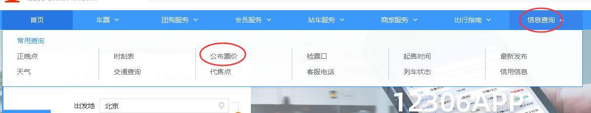 那么怎么查看公布票价呢?12306网站依次点“信息查询”|“公布票价”。手机12306客户端依次点“我的”|“票价查询”,注意查的时候点“公布票价”。
